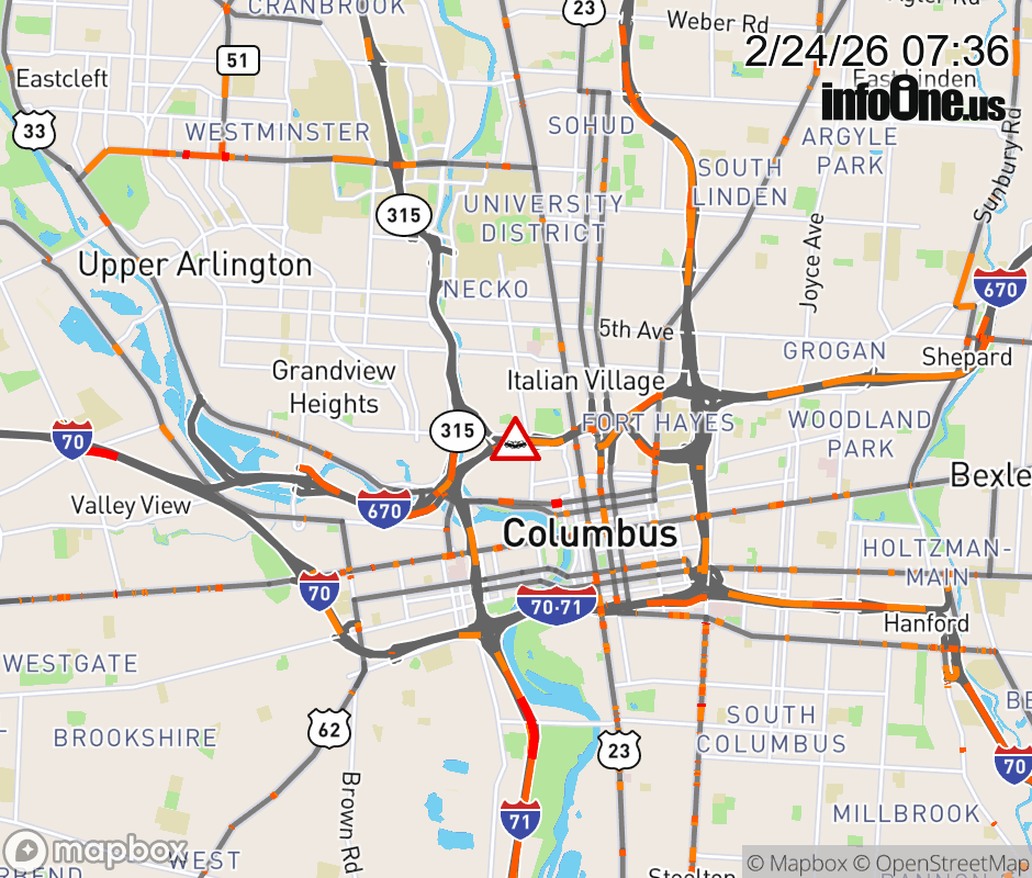 The left shoulder is blocked on I-670 West at SR-315 North, due to a crash. ![]() |