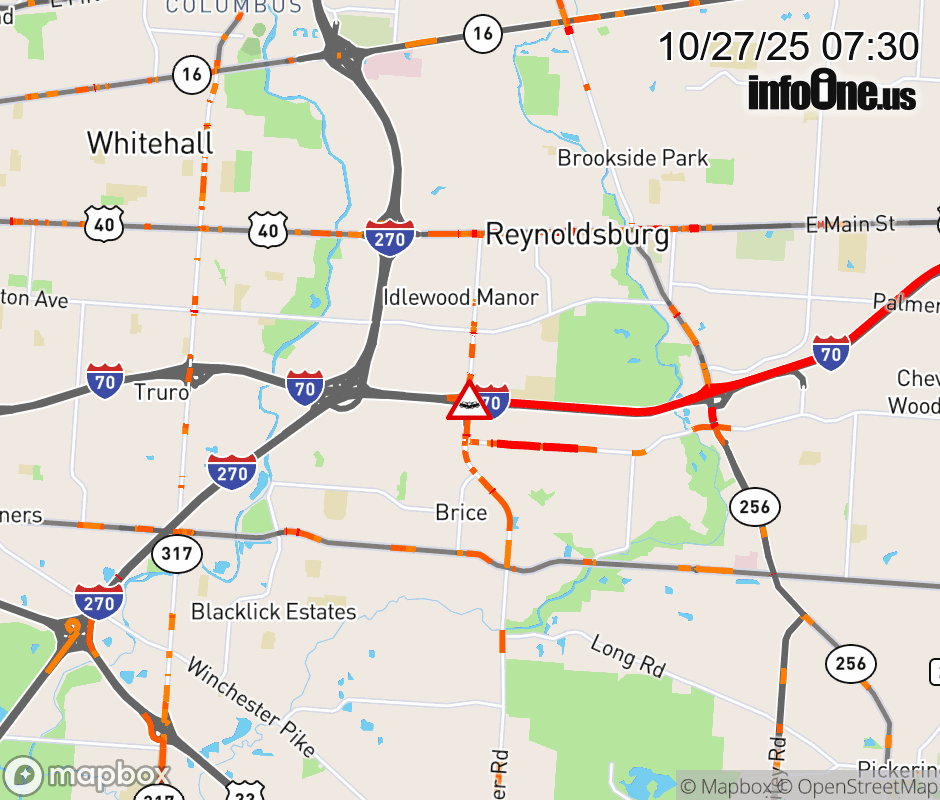 The left lane is blocked on I-70 West beyond Brice Rd, due to a crash. Updated: Mon 10/27/25 7:30 AM EDT ![]() Updated: Mon 10/27/25 7:30 AM EDT |