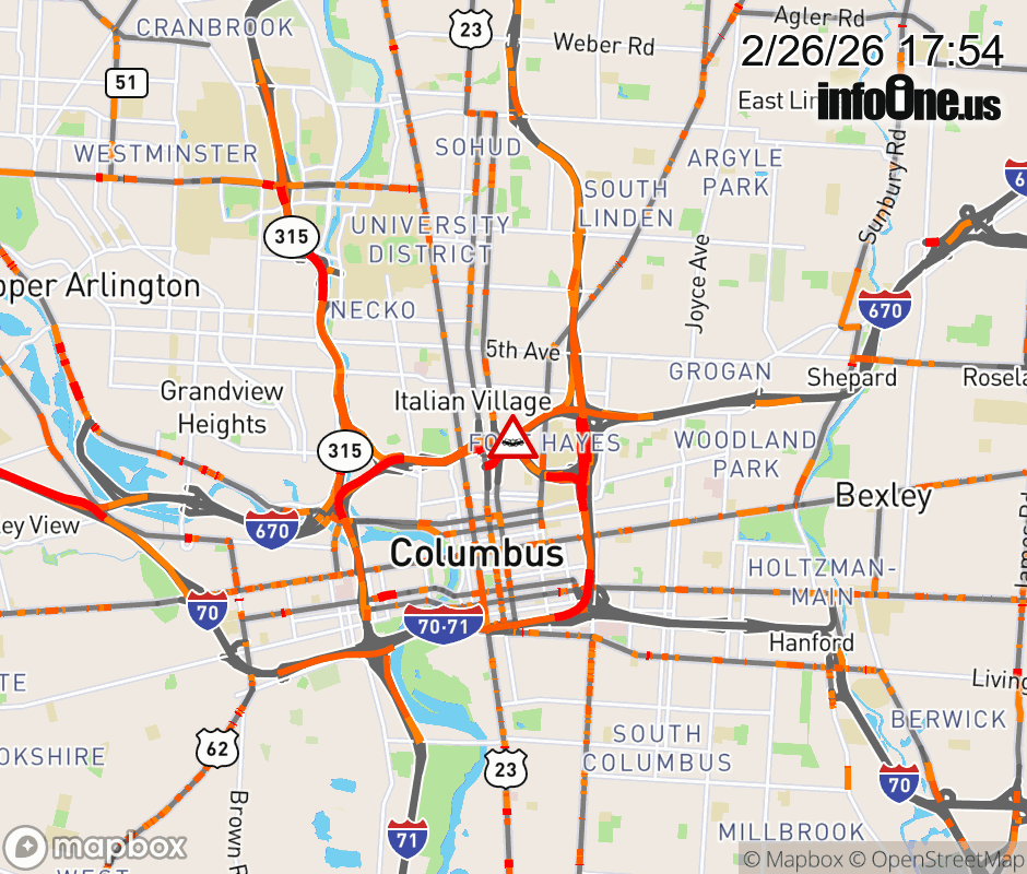 The left shoulder is blocked on I-670 West at High St/US-23 S/Third St, due to a crash. ![]() |