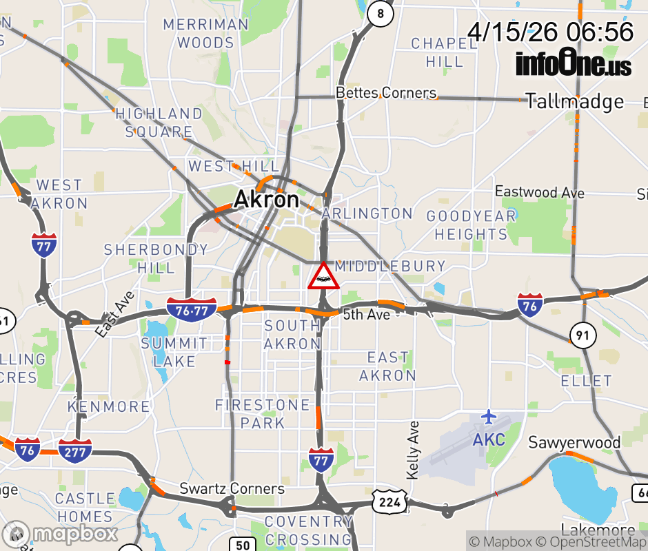 The right shoulder is blocked on SR-8 North at I-77/I-76 On-Ramp, due to a crash. ![]() |