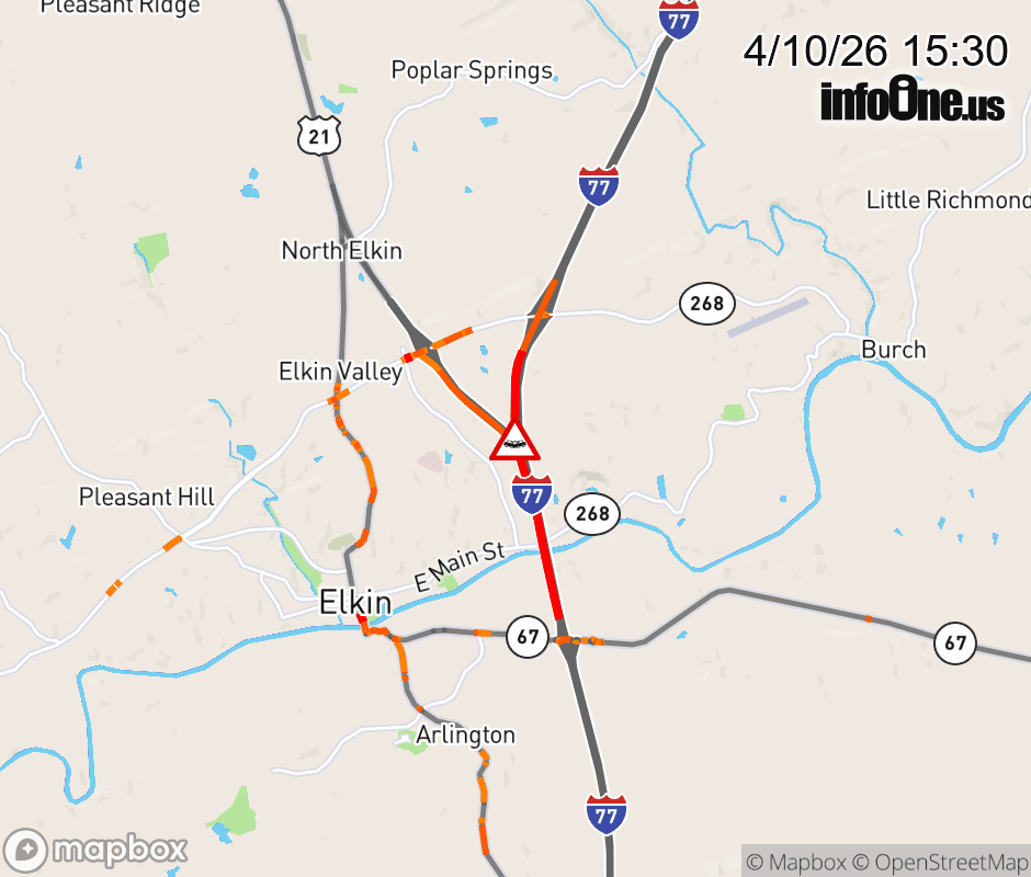The left lane is closed at Exit 82(NC 268). Updated: Fri 4/10/26 3:30 PM EDT ![]() Updated: Fri 4/10/26 3:30 PM EDT |