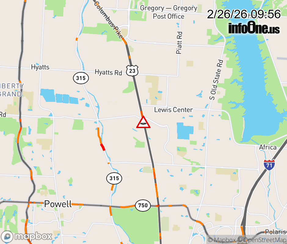 The left lane is blocked on US-23 North at Slate Ridge Dr, due to a crash. ![]() |