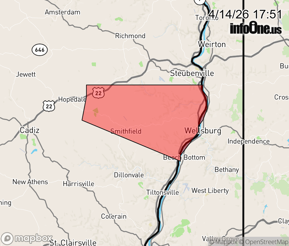 Canceled 4/14/26 6:00 PM Severe Thunderstorm Warning issued April 14 at 5:48PM EDT until April 14 at 6:00PM EDT by NWS Pittsburgh PA At 548 PM EDT, a severe thunderstorm was located over Wintersville, or near Steubenville, moving east at 35 mph. HAZARD...60 mph wind gusts and small hail. SOURCE...Radar indicated. IMPACT...Expect damage to roofs, siding, and trees. Locations impacted include... Steubenville, Wellsburg, Mingo Junction, Smithfield, Brilliant, New Alexandria, Bloomingdale and Brentwood. ![]() |