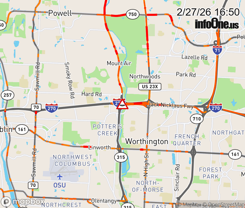 The left shoulder is blocked on I-270 East at US-23, due to a crash. ![]() |
