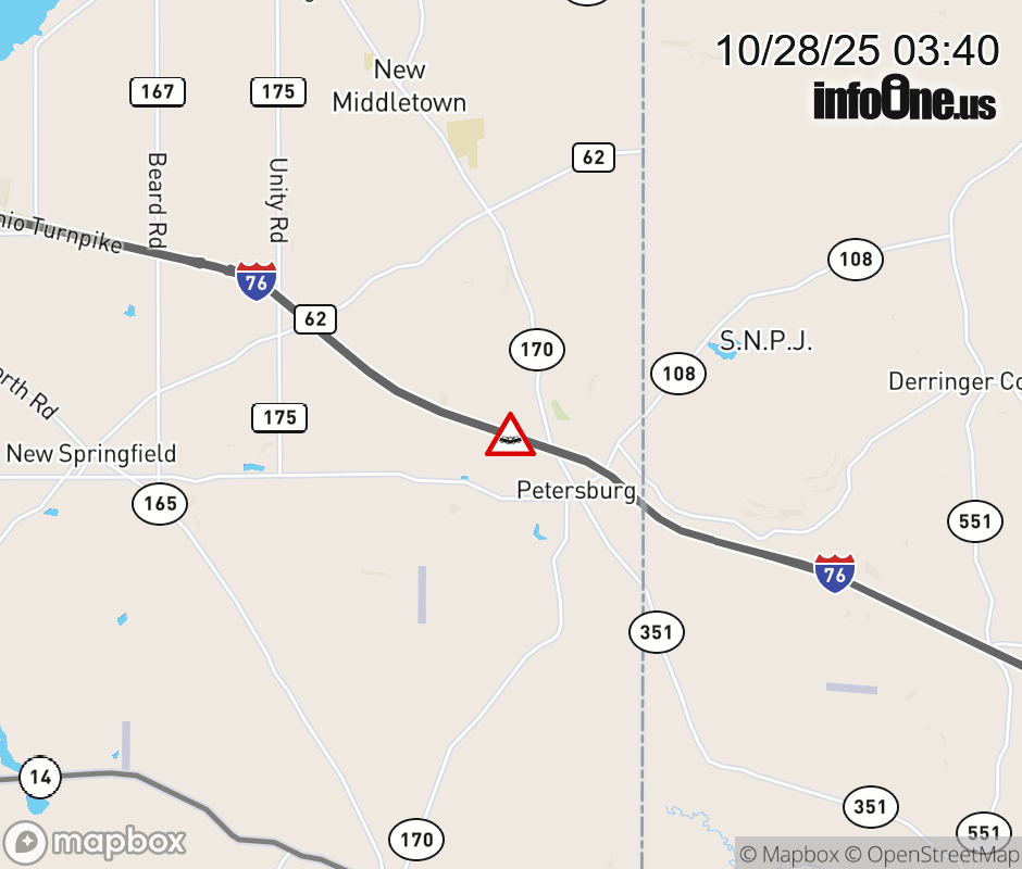 Expect lane closures on I-76 West (Ohio Turnpike) beyond State of Pennsylvania, due to a crash. ![]() |