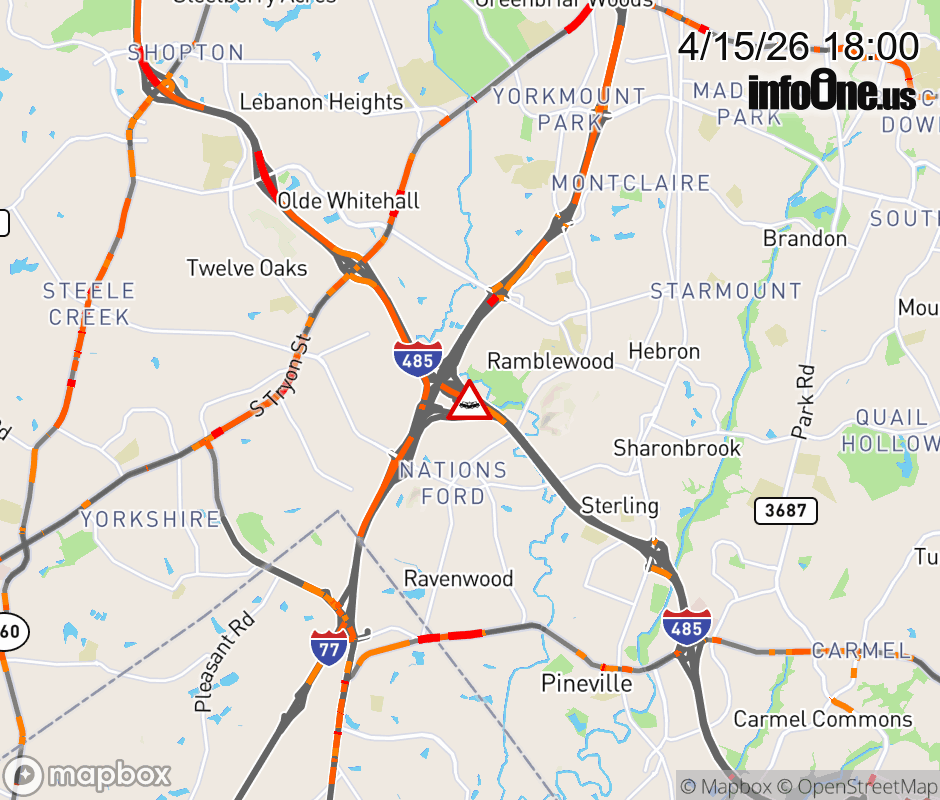 The left lane is closed past Exit 67 (I-77). Updated: Wed 4/15/26 6:00 PM EDT ![]() Updated: Wed 4/15/26 6:00 PM EDT |
