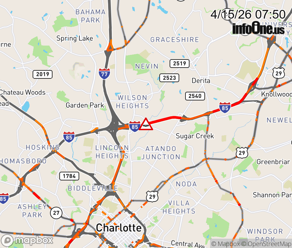 The left shoulder is closed before Exit 39 (Statesville Ave.). Updated: Wed 4/15/26 7:50 AM EDT ![]() Updated: Wed 4/15/26 7:50 AM EDT |