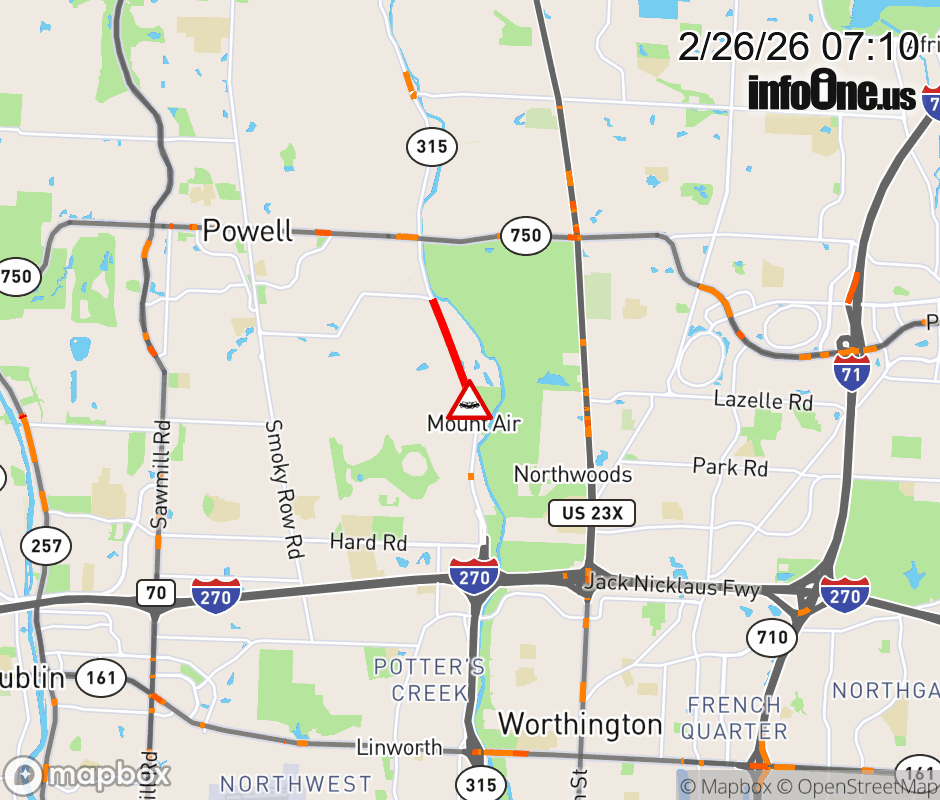Canceled 2/26/26 7:42 AM Location: SR-315 South at MM 13.7, OH Accident.