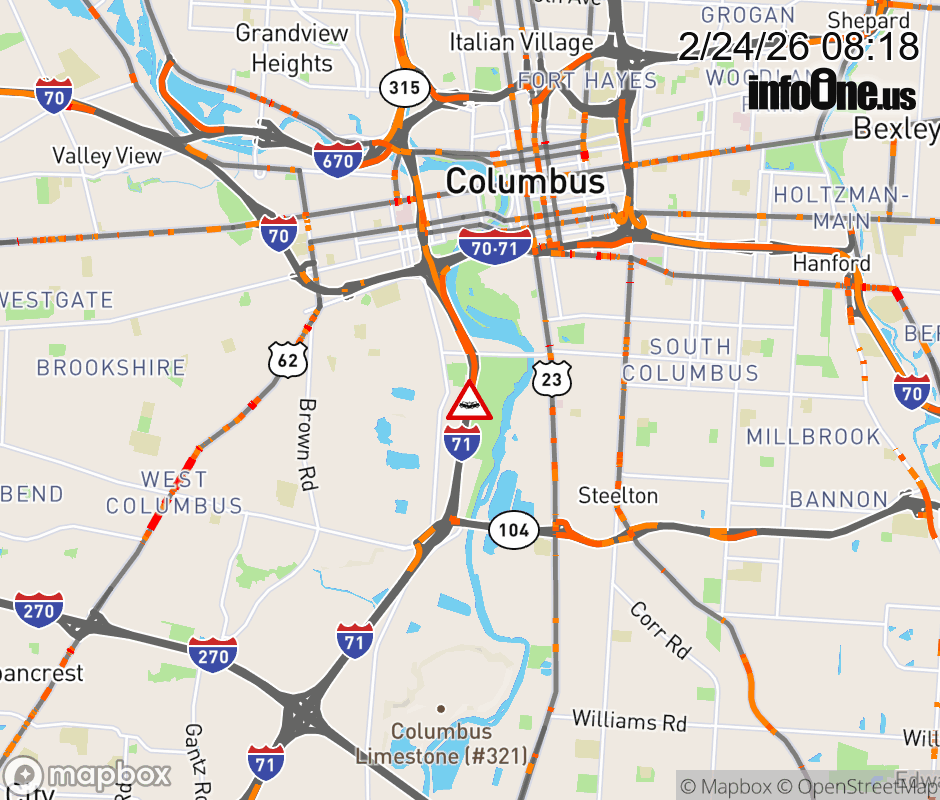 The left shoulder is blocked on I-71 North beyond SR-104/Frank Rd, due to a crash. ![]() |