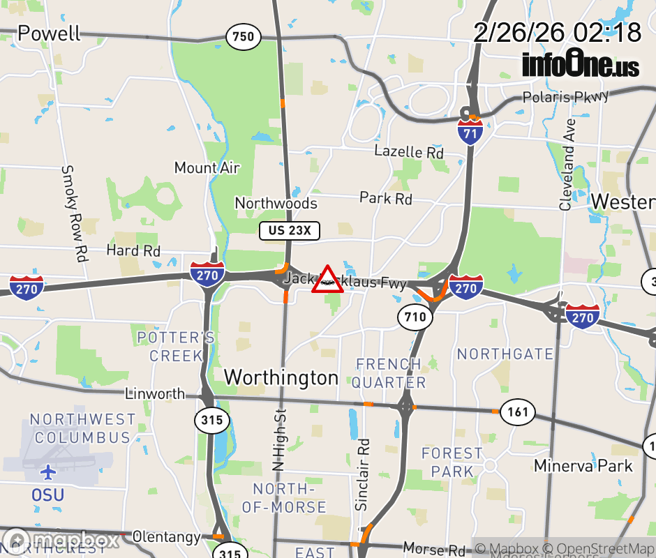 All lanes are closed on I-270 West at US-23 (North Side), due to a crash. ![]() |