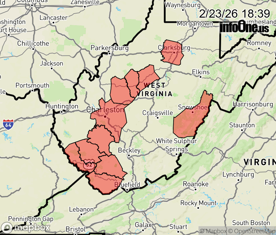 Canceled 2/24/26 12:52 AM Winter Storm Warning issued February 23 at 6:37PM EST until February 24 at 1:00AM EST by NWS Charleston WV * WHAT... Heavy snow. Additional snow accumulations up to one inch. * WHERE... Portions of central, northeast, northern, and southern West Virginia. * WHEN... Until 1 AM EST Tuesday. * IMPACTS... Roads, and especially bridges and overpasses, will likely become slick and hazardous. Plan on slippery road conditions. ![]() |