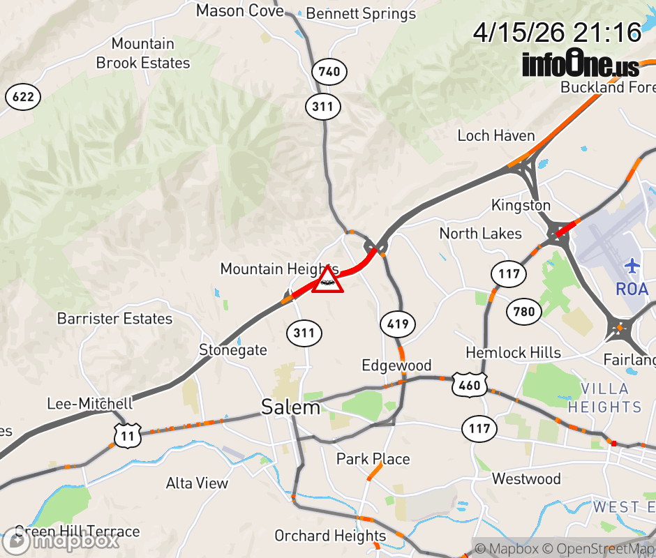 On I-81 at mile marker 140.8 in the County of Roanoke, motorists can expect delays due to a vehicle crash. The north left shoulder is closed. ![]() |