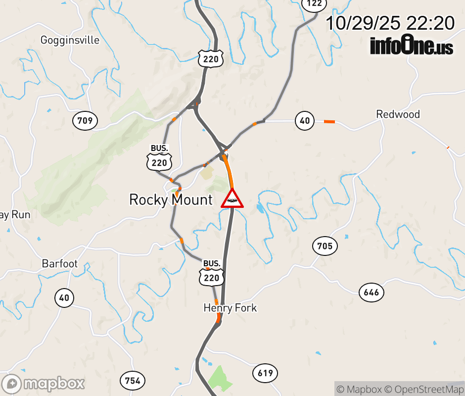 On US-220 in the County of Franklin, in the vicinity of Ramp Intersection, motorists can expect delays due to a vehicle crash. The south left shoulder and left lane are closed. ![]() |